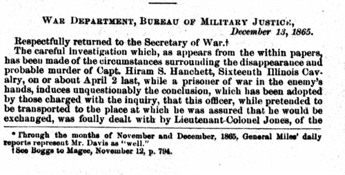 First, I have looked at what military records are available, but they seem to end with the release of the prisoners, and the possible murder of Union Captain Hiram S. Hanchett, alias George Schellar.