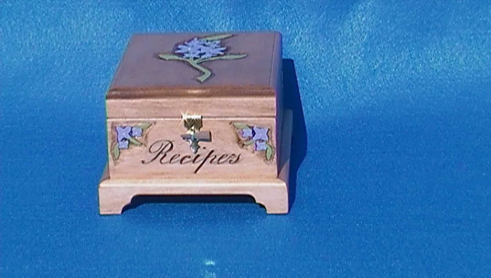 Recipe Boxes – Flocking colors available for box interior are black, brown, cardinal, emerald green, cream, navy blue, and wine. Includes half-mortise box lock and key.