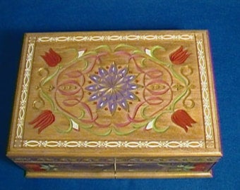 Handmade and handcarved. Custom order. Includes half-mortise box lock and key.